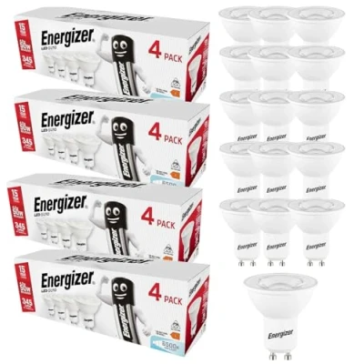 Energizer GU10 LED Bulbs Daylight 6500k (16 Pack) 50W Equivalent 345lm, 4.2W Light Bulb, Non Dimmable 38 Beam Angle Energy Saving