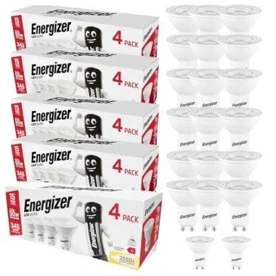 Energizer GU10 LED Bulbs Warm White 3000k (20 Pack) 50W Equivalent 345lm, 4.2W Light Bulb, Non Dimmable 38 Beam Angle Energy Saving