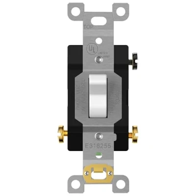 Commercial grade ON/OFF toggle switch with shallow body design to fit standard junction boxes; replaces any 1-gang wall switch; push-in and side wiring (copper only); break-off plaster ears Made from impact-resistant Polycarbonate Thermoplastic with solid steel components; frame dimensions: 3.65” H x 1.30” W x 0.90” D Suitable for commercial locations such as offices, schools, stores, shops, restaurants, public facilities, and hotels, as well as residential areas that require 20A switches For the best fit and color match, always use ENERLITES wall plates such as the 8811-W, 8811M-W, or 8811O-W toggle switch covers White; 20A, 120V/277 VAC, 3-way or single pole; option of back wiring (#10-#14 AWG) or side wiring (#12-#14 AWG); self-grounding; break-off plaster yoke tabs; wiring instructions included; UL-listed; 1-year warranty