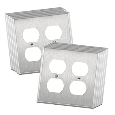 Enerlites 7722 10PCS Duplex Outlet Stainless Steel Wall Plate 2 Gang, Standard Size, 430 Grade Metal Alloy Corrosive Resistant Cover for Receptacle Electrical Power Sockets (10 Pack)