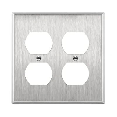Enerlites 7722 2 Gang Duplex Receptacle Stainless Steel Wall Plate, Standard Size