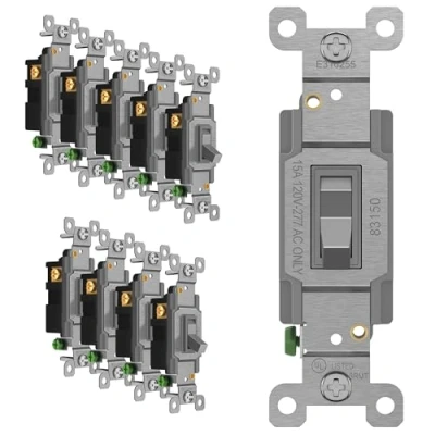ENERLITES 83150 GR 10PCS Toggle Light Switch, 3 Way or Single Pole, 15A 120 277V, Grounding Screw, Residential Grade, UL Listed, GY 10PCS, Gray (10 Pack), 10 Count