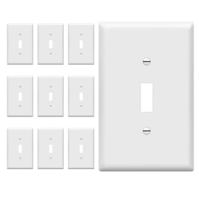 Enerlites 8811M W 10PCS 1 Gang Toggle Switch Wall Plate, Medium Size, Unbreakable Polycarbonate, White (Pack of 10)