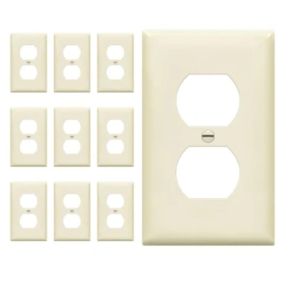 Enerlites 8821 W 1 Gang Duplex Outlet Wall Plate, Standard Size, Unbreakable Polycarbonate, Light Almond 10 Pack