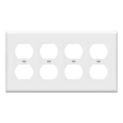 Enerlites 8824 W 4 Gang Duplex Outlet Wall Switch Plate, Standard Size, Unbreakable Polycarbonate, White