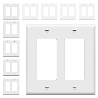 Enerlites 8832 W 2 Gang Decorator/GFCI Rocker Wall Plate, Standard Size, Unbreakable Polycarbonate, White, 10 Pack