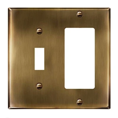 ENERLITES Combination Toggle Switch & Decorator Receptacle Metal Wall Plate, Stainless Steel Outlet Cover, Corrosion Resistant, Standard Size 2 Gang 4.50" x 4.57", 771131 AB, Antique Brass