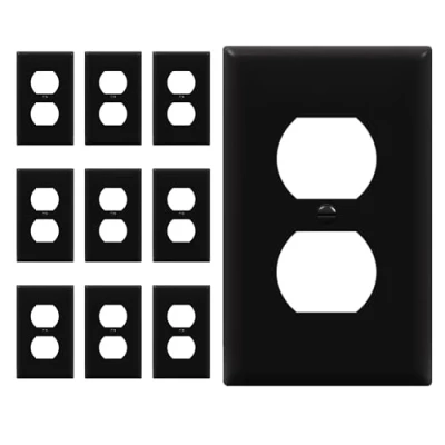ENERLITES Duplex Receptacle Outlet Wall Plate, Size 1 Gang 4.50" x 2.76", Unbreakable Polycarbonate Thermoplastic, UL Listed, 8821 BK 10PCS, Black (10 Pack)