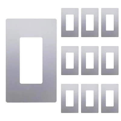 Made of unbreakable polycarbonate thermoplastic material to provide durability, flexibility, and resilience to withstand hard impacts and heavy force Enhance the appearance of any room with an elegant silver color decorator wall plate; seamless design means no visible gaps between the wall plate and the wall Easy replacement of any wall plate of the same size. Outer dimensions are: Height: 4.68" x Length: 2.93” inches. Inner dimensions are: Height: 2.65” x Length: 1.36” inches. Smooth finish without recessed lines and soft edges allow for easy cleaning Screwless cover for added child safety, 1-year Warranty, UL listed, Manufacturer: ENERLITES