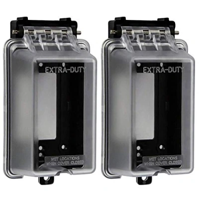 Extra-Duty for use in wet locations. Polycarbonate thermoplastic construction provides maximum durability from severe weather conditions. FOR DECORATOR/GFCI STYLE OUTLETS ONLY - RECEPTACLES SOLD SEPARATELY Weatherproof enclosure protects outlets from outdoor elements such as rain, mud, dirt, and snow. Also provides protection against pets and other animals Features locking tab located at the bottom of housing, and two openings to run electrical cords individually. Can be mounted vertically. 1-Gang, 6.1” Height x 3.4” Width x 2.8” Depth Compatible with ENERLITES USB outlets, guide light outlets, and any standard decorator outlets or switches. Part Numbers: TU2154A, TG215TRGL, 61501-TR-W and other select brands Includes mounting screws, NEMA 3R rated, meets NEC section 406.9(B)(1), UL listed, Weight: 6.25E-4 Pounds, Manufacturer: ENERLITES