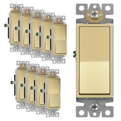 Enerlites Light Switch On/Off Paddle Wall 91150 GD 15 Amp, 120V/277V, AC, Single Pole, 3 Wire, Grounding Screw, Residential Graded Switch, UL Listed, Gold