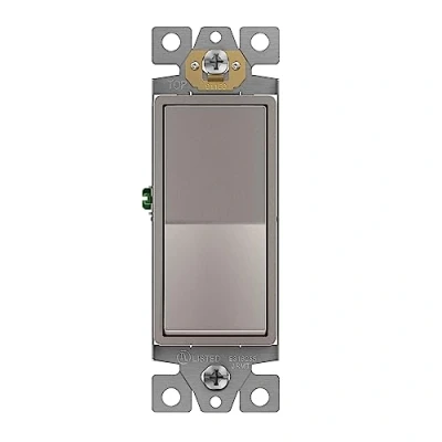 From our Elite Series with a matte nickel color Suitable for residential use Decorator paddle design with smooth, quiet action is a modern upgrade from toggle switches Heavy duty; The high impact resistant polycarbonate thermoplastic body protects the decorator light switch from wear and tear Simple installation; UL listed, 15A 120/277 VAC; compatible with LED, CFL, incandescent, halogen, and fluorescent bulbs