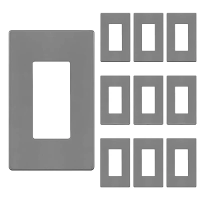 ENERLITES Screwless Decorator Wall Plate Child Safe Outlet Cover, Size 1 Gang 4.68" H x 2.93" L, Unbreakable Polycarbonate Thermoplastic, SI8831 GY 10PCS, Glossy, Gray (10 Pack)