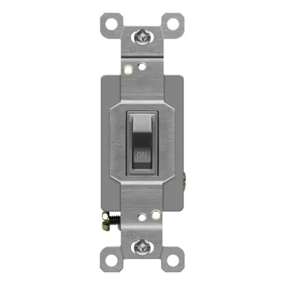 Commercial grade On/Off toggle light switch is made of high-quality materials; impact resistant polycarbonate thermoplastic and solid steel. Frame dimensions: 3.65" H x 1.30" W x .90" Shallow body design fits standard junction boxes. Back insert and side terminal wiring (copper only). Break-off plaster ears. Grounding screw Suitable for houses, condos, apartments and most commercial areas that require only 15A switches such as offices, schools, stores, shops, restaurants, public facilities, and hotels Use with ENERLITES wall plates for the best fitting and color match, part numbers 8811-GR or 7711 stainless steel. 20A, 120V-277V (AC), Single Pole. Wiring instructions included. UL Listed
