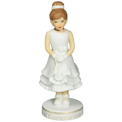 ENESCO FIGURINE: from the Growing Up Girls collection, perfect for birthdays and special occasions in a girl's life DESIGN: showcases a brunette girl dressed in white for her First Communion CRAFTED: from high-quality bisque porcelain material and painted with intricate details PACKAGING: includes a Growing Up Girls gift box DIMENSIONS: 2" L x 2" W x 4.75" H