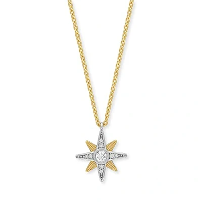 The highlight of this angel caller Twinkle Little Star necklace is the star pendant in silver and gold, set with elegant shimmering synthetic zirconia stones The chain is closed with a carabiner hook and can be adjusted in two steps to the lengths 40 and 44 cm Cubic Zirconia is a man-made stone. The diamond typical brilliant cut gives it a particularly sparkling look As a further finish, rhodium is comfortable to wear and protects the piece of jewellery from tarnishing - all pieces of jewellery are nickel-free and therefore also ideal for allergy sufferers All items are delivered with matching jewellery packaging and a certificate