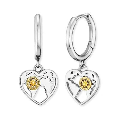 Engelsrufer Aloha Women's Earrings Sterling Silver with World Map and Wind Rose Bicolour Nickel Free, 14mm, Silver, No gemstone.