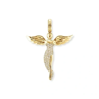 Yellow Gold plated 925 Sterling Silver Pendant shaped like an Angel Size 26 mm (1.02") Studded with 72 White Zirconia Captivates with magical brilliance