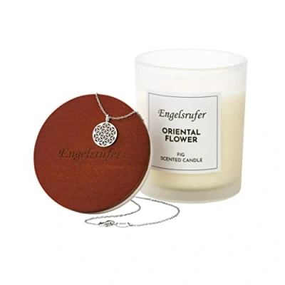Stainless steel necklace with heart wing symbol Candle with sweet, citrus scent of bergamot Burning time: approx. 35 hours Vegan - made from 100% soy wax and free from harmful substances Satin glass and closed with real wood lid