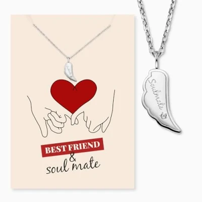 Silver necklace with angel wings and zirconia + card "Soulmate" Emotional gift for soulmates Stainless steel jewellery with loving detail Packaged in high quality greeting card Ideal for gifting for many occasions