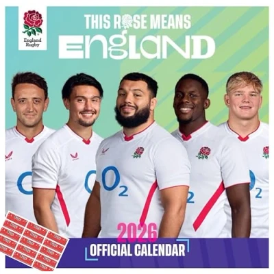 England Rugby Union Calendar 2025 Square Wall Gift Present with FREE Organising Stickers Included