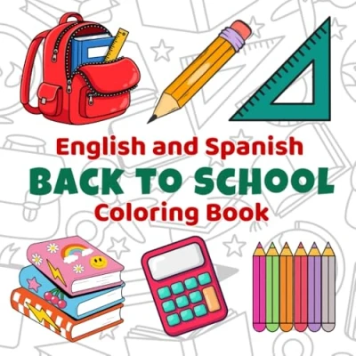 English and Spanish Back to School Coloring Book: Fun Simple Book for Kids Ages 38 (English Spanish)