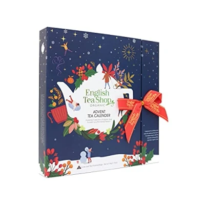 English Tea Shop Book Style Christmas Night Advent Calendar 25 Pyramid Bags 50g