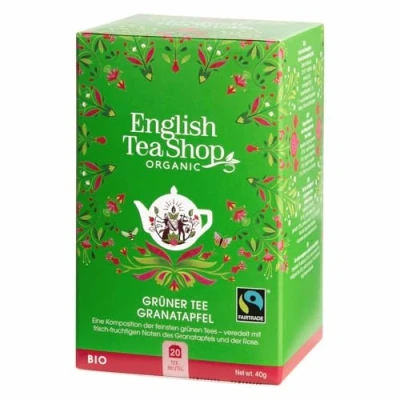 English Tea Shop's Your Everyday Tea Range consists of almost 30 tea blends that are carefully curated to suit your different moods and times of the day. Green Tea Pomegranate has a very sweet, fruity balance in a perfect way. This fruit also adds a punchiness to the green tea which makes it even more intense. A great fruity all around tea for multiple occasions. As fans of Mother Nature, we make English Tea Shop tea bags, boxes and outer packaging fully compostable. Our tea bags are staple free and sachets are recyclable.