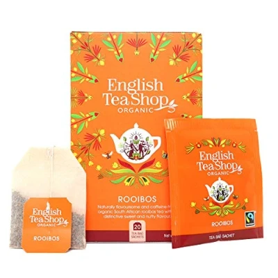 English Tea Shop's Your Everyday Tea Range consists of almost 30 tea blends that are carefully curated to suit your different moods and times of the day. A bright red coloured tea, with a punchy fragrance. This delightful South African classic blend has a sweet, nutty, fruity and smoky finish. The ideal cup of tea to be enjoyed with pastries. As fans of Mother Nature, we make English Tea Shop tea bags, boxes and outer packaging fully compostable. Our tea bags are staple free and sachets are recyclable.