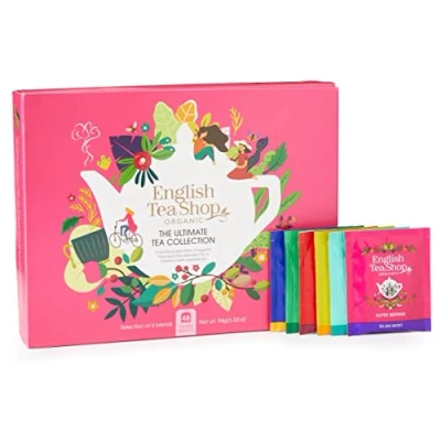 TEA LOVERS GIFT PACK: Introducing The English Tea Shop Organic Tea Collection Gift Set: Take home 6 of our most popular tea blends in a beautiful presentation box for the perfect tea gift EXPLORE AND DISCOVER: Enjoy 48 tea bags in 6 different flavours; classic English Breakfast, decadent Earl Grey, zingy Pure Green Tea, Lemongrass, Citrus and Ginger, Super Berries and refreshing Perfect Peppermint A PERFECT TEA GIFT: The perfect gift pack for tea lovers: Celebrate the holidays and special occasions with our delicious selection box of beautifully blended and organic tea bags PLANET FRIENDLY: As fans of Mother Nature, we have made English Tea Shop tea bags and inner packaging fully compostable along with our Organic Tea Collection Gift Pack being free from plastic and overwrapping ONLY ORGANIC INGREDIENTS: We work with only the finest organic ingredients and Fairtrade farmers, blenders and producers from all over the world to produce our special range of teas for you to enjoy at home YOUR TEA LOVING COMMUNITY: A Sri Lankan tea story infused with British traditions. Every cup celebrates our vibrant community and heartfelt commitment to sustainability