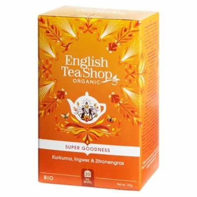 AROMATIC GINGER AND LEMONGRASS: Our invigorating Turmeric, Ginger and Lemongrass whole leaf tea is a warming blend of aromatic spices that delivers a powerful flavour infusion in every cup. NATURALLY CAFFEINE-FREE: Naturally caffeine-free, our Turmeric, Ginger and Lemongrass whole leaf tea can be enjoyed at any time throughout the day; as a morning power-up or an after dinner finale. SUPER GOODNESS RANGE: Part of our Super Goodness range from English Tea Shop, a collection of fragrant speciality teas packed full of goodness. Explore other exciting flavours and discover your new favourite super blend. PLANET FRIENDLY WHOLE LEAD TEA: As fans of Mother Nature, we have made sure that our inner and outer packaging is fully compostable whilst being free from plastic and overwrapping. ONLY ORGANIC INGREDIENTS: We work with only the finest organic ingredients and Fairtrade farmers, blenders and producers from all over the world to produce our special range of teas for you to enjoy at home. YOUR TEA LOVING COMMUNITY: A Sri Lankan tea story infused with British traditions. Every cup celebrates our vibrant community and heartfelt commitment to sustainability.