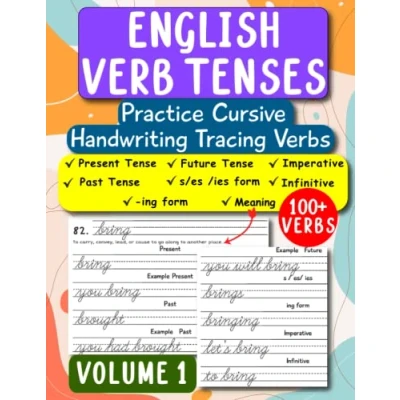 English Verb Tenses: Trace Cursive Verbs Grammar Workbook (ESL & Homeschooling Workbook)