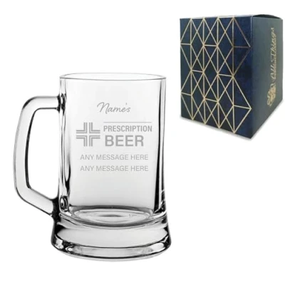 Engraved Beer Glass, Personalised Prescription for Design, 475ml or 16.7oz Capacity, Gift Boxed, Funny Him