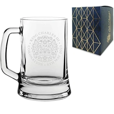 Engraved Commemorative Coronation of The King Beer Mug Official Emblem to Commemorate Charles III and Queen Consort
