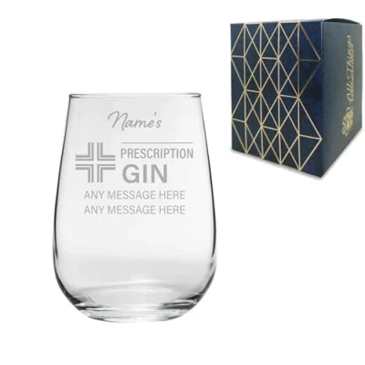Engraved Gin and Tonic Glass, Personalised Prescription for Design, 590ml or 20oz Capacity, Gift Boxed, Funny Her
