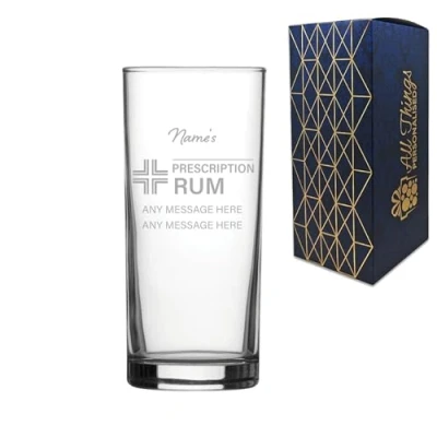 Engraved Rum Glass, Personalised Prescription for Design, 340ml or 12oz Capacity, Gift Boxed, Funny Him