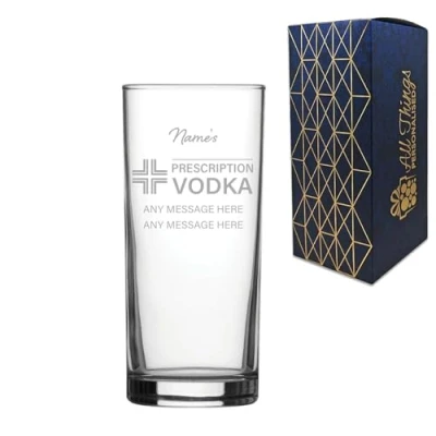 Engraved Vodka Glass, Personalised Prescription for Design, 340ml or 12oz Capacity, Gift Boxed, Funny