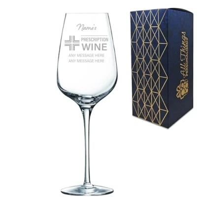 Engraved Wine Glass, Personalised Prescription for Design, 450ml or 15oz Capacity, Gift Boxed, Funny Her