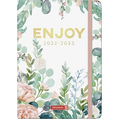 2 pages = 1 week Six languages: German, English, French, Spanish, Italian, Dutch Motif: Enjoy With elastic, drawing ribbon and rounded corners with corner perforation Hardcover