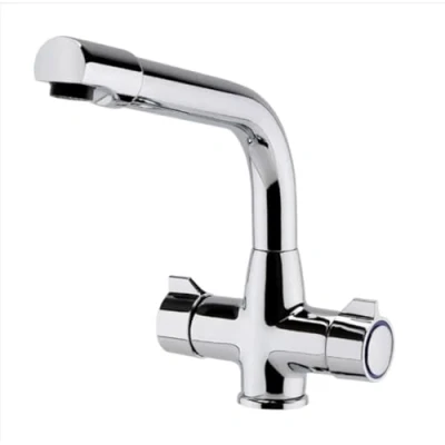 ENKI, Alpha, KT021, Chrome, Brass Construction Dual Flow Kitchen Sink Mixer Tap for Basin, with Twin Levers & Swivel Spout Perfect Low Pressure and Double Bowl Sinks, Drip Free Ceramic Valve