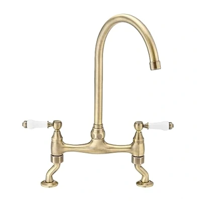 SOPHISTICATED STYLING- The traditional Astbury lever bridge kitchen sink mixer tap in antique brass, is a combination sophisticated traditional styling and engineering excellence. DURABLE- The solid brass construction with antique brass finish is easy and safe to use and has 'drip free' quarter turn ceramic valves. The swivel spout, swan neck & quarter turn ceramic valves for precise flow control, maximise performance & style. WORKING REQUIREMENTS- For this kitchen tap to operate efficiently your water system will need to produce at least 0.5 bar of pressure, though we recommend 1.0 bar for best performance. An excellent choice for your hot and cold water faucet replacement. WHAT'S IN THE BOX- The Astbury traditional bridge kitchen mixer tap with white ceramic levers comes complete with fitting backnuts, mixer tap and installation guide. Height approximately: 442mm, Spout projection approximately: 225mm, Suitable for worktops/sinks up to 40mm thickness. Adjustable tap pillars allow for taps to be installed on a sink or worktop with tap hole distance of between 165 and 245mm. GUARANTEE- House of Enki offer a one year guarantee on this antique bronze deck mounted lever bridge kitchen sink mixer tap. The superior finish is corrosion and rust resistant., Weight: 4.188782978 Pounds, Manufacturer: ENKI