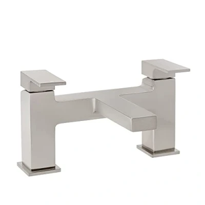 ENKI, Athena, BT0213, Brushed Nickel, Square Bath Mixer tap, Solid Brass, Easy Clean, Modern Design