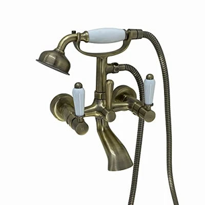 DESIGN - The Downton wall-mounted bath shower mixer tap from House of ENKI oozes luxury and style. With solid brass construction and finished with durable antique brass plating and traditional white ceramic swivel levers, it will add a touch of class to any bathroom. It is fully supplied with shower head & hose with UK standard top quality cartridges and fixings for easy assembly. This range of bathroom fittings will compliment both modern and traditional bathroom interiors. QUALITY - Our bath mixer taps are made of solid brass. Complete with drip-free quarter-turn ceramic valves, our bath taps are easy and safe to use with cold water and hot water and will work on high pressure water systems. SIZE - Distance between pillars - 150mm, Connection size - 3/4" EASY TO INSTALL - These bathroom accessories come with all fittings to be installed straight out of the box and include comprehensive installation guides. For these water taps to operate efficiently, your water system will need to produce at least 0.5 bar of pressure, though we recommend 1.0 bar for best performance. 10 YEAR GUARANTEE - Although our bathroom accessories are already trusted by thousands of customers, we want to provide you with true peace of mind. That�s why we offer a 10 year guarantee on our bathroom taps fittings., Weight: 7.3193470984 Pounds, Manufacturer: ENKI