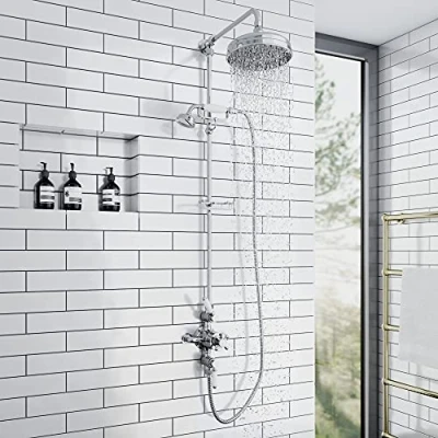 ENKI, Downton, SH0180, Shower Set with 2 Showerhead Outlets & Telephone Style Cradle, Triple Thermostatic Valve, Chrome Tap for Bathrooms Showers