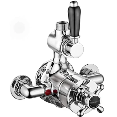 ENKI, Downton, T69, Single Shower Unit Outlet, Twin Thermostatic Valve, Black & Chrome Tap Attachment for Bathroom Shower, Classic Valve Style