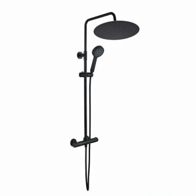 DESIGN - The Dune thermostatic shower mixer valve with two shower outlets produces a perfectly controlled shower. Complete with riser rail kit, large 400mm round rainfall shower head on a swivel joint, handheld shower head & bracket with hose. The built-in anti-scald device means no more fluctuating water temperatures while showering. With solid brass construction and finished with matte black plating, it will suit any bathroom. Fully supplied with all fixings for easy assembly. QUALITY - Our bathroom shower valve attachment is made of solid high grade brass. This premium quality thermostatic bath shower mixer is checked for excellence in components and build quality, good design, easy installation and maintenance. It incorporates premium safety features and is designed to work effectively at high water pressures. SIZE - Hot/cold inlets - 1/2", Distance between connections - 150mm EASY TO INSTALL - These bathroom accessories come with all fittings to be installed straight out of the box and include comprehensive installation guides. For this thermostatic shower valve to operate efficiently, your water system will need to produce at least 0.5 bar of pressure, though we recommend 1.0 bar for best performance. 1 YEAR GUARANTEE - Although our bathroom accessories are already trusted by thousands of customers, we want to provide you with true peace of mind. That�s why we offer a 1 year guarantee on our bathroom taps fittings, Weight: 8.598028218 pounds, Manufacturer: ENKI