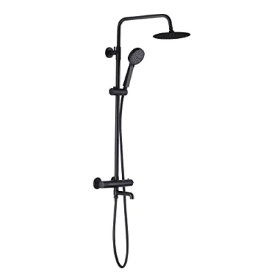 Solid brass and stainless steel construction, finished in high quality matte black Contemporary minimalistic design with ultra slim shower head, handheld shower and bath filler Thermostatic bar shower mixer valve with anti-scald device to keep you and your family safe Shower kit includes: Dune thermostatic bar shower valve, rigid riser rail, shower head, handset kit, installation guide 1 Year Guarantee, Weight: 8.598028218 Pounds, Manufacturer: ENKI