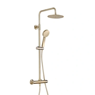 ENKI, Dune, SH0620, Brushed Brass, Thermostatic Shower Mixer Set, Solid Overhead Shower, Hand Anti Scald Device, Contemporary Design, 1 Year Guarantee