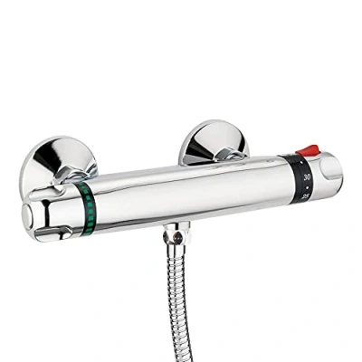 ENKI, Dune, T32, Chrome, Thermostatic Shower Mixer Valve, Bar Anti Scald Device, Modern Design, Constant Temperature Control, Top Outlet, for Rigid Riser Rails or Slider
