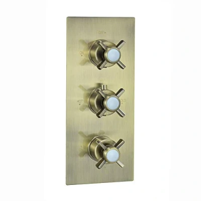 ENKI, Edwardian, TSV062, Concealed Thermostatic Triple Shower Mixer Valve with Two Outlets, Cross Handles, Traditional Bathrooms, Constant Temperature, Antique Brass